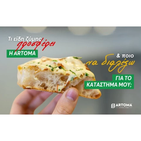 H Artoma είναι μια δυναμικά αναπτυσσόμενη εταιρία στο χώρο της παρασκευής χειροποίητων, καινοτόμων, προϊόντων ζύμης με μακρά εμπειρία που ξεκινά από το 1979. Σήμερα η εταιρία εδρεύει στη Βιομηχανική Περιοχή Κιλκίς όπου λειτουργεί σύγχρονη και τεχνολογικά προηγμένη βιομηχανική μονάδα με σκοπό την παραγωγή εναλλακτικών προϊόντων ζύμης.